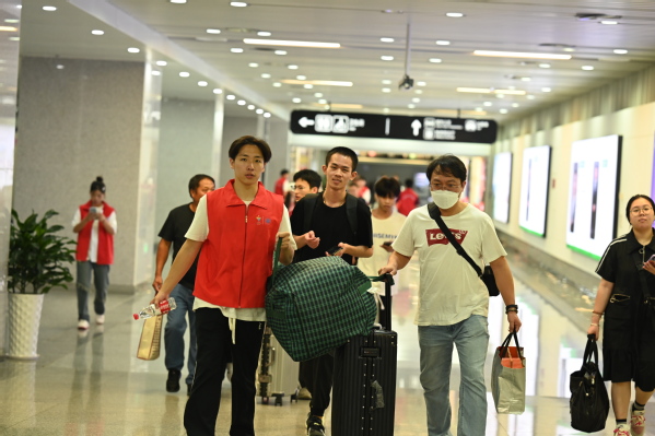 他们耐心地为新生解答各类入学问题,坚守在各个新生报到点提供热情服务。