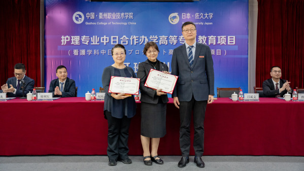 堀内校长表示,希望通过本次中日合作办学,将日本佐久大学专业的护理知识和解决高龄者看护等问题的相关经验措施传授给学生们,助力解决中国在大健康、老龄化时代背景下面临的相关问题。佐久大学将全力配合衢职院护理专业中日合作办学项目的实施,希望双方在深化护理专业建设、护理人才培养的同时,为老年人健康长寿、创造更美好的生活做出贡献。