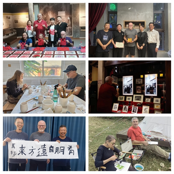 在衢期间,彭涛一行在我校和市相关部门的陪同下参观了杜立特行动纪念馆、水亭门街区、城市展览馆、龙游溪口未来社区、柯城区麻蓬村、衢州市两中心、衢州二中,共同回顾衢州与雷德温两座友好城市交往的历史,进一步感受衢州深厚的文化底蕴和蓬勃发展。通过参加非遗剪纸、水脉艺术节、衢江区云溪乡工道瓷艺术创作交流、信安湖夜游、廿里上宇村枫林野奢基地、衢江区东坪村艺术写生和采风创作,以及共同在美术馆布展,留下了精彩难忘的回忆,缔结了深厚的友谊。
